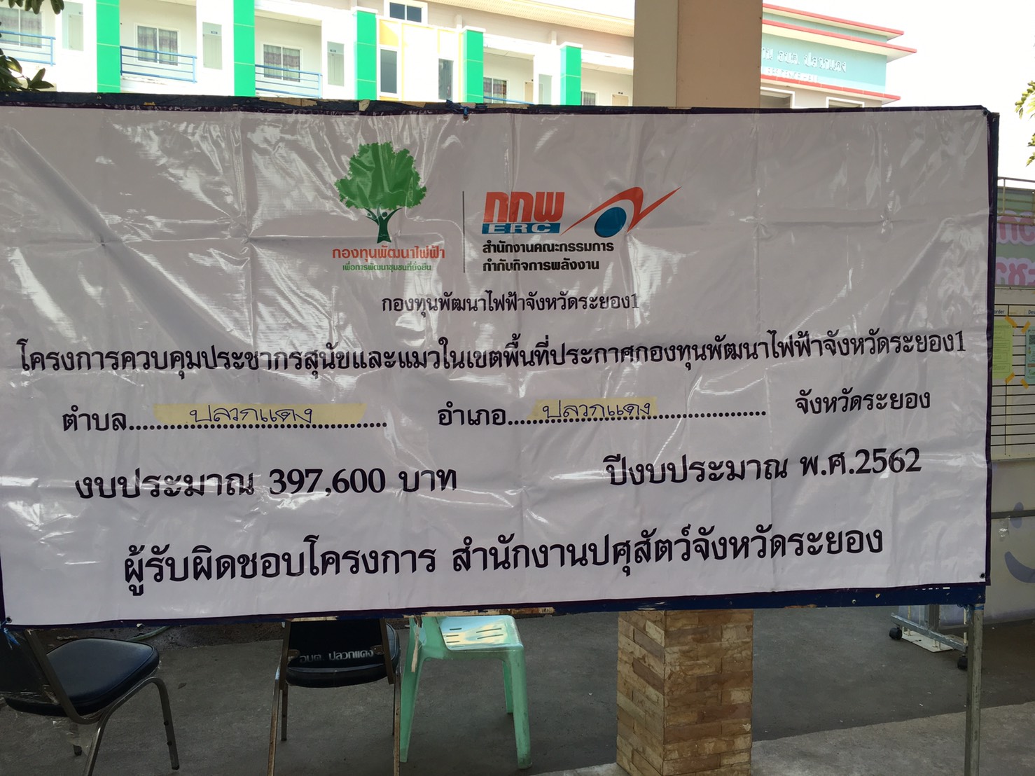 วันที่ 29 มกราคม 2562 สำนักงานปศุสัตว์จังหวัดระยอง ร่วมกับ องค์การบริหารส่วนตำบลปลวกแดง จัดทำโครงการควบคุมประชากรสุนัขและแมว ภายใต้โครงการสัตว์ปลอดโรค คนปลอดภัย จากโรคพิษสุนัขบ้า ตามพระปณิธาน ศาสตราจารย์ ดร.สมเด็จพระเจ้าลูกเธอ เจ้าฟ้าจุฬาภรณวลัยลักษณ์ อัครราชกุมารี โดยการผ่าตัดทำหมัน และฉีดวัคซีนป้องกันโรคพิษสุนัขบ้า ให้แก่สุนัขและแมว ที่มีเจ้าของและไม่มีเจ้าของ ณ ที่ทำการ อบต.ปลวกแดง ต.ปลวกแดง อ.ปลวกแดง จ.ระยอง ทำหมันสุนัขตัวเมีย 18 ตัว ตัวผู้ 12 ตัว แมวตัวเมีย 15 ตัว ตัวผู้ 9 ตัว รวม 54 ตัว