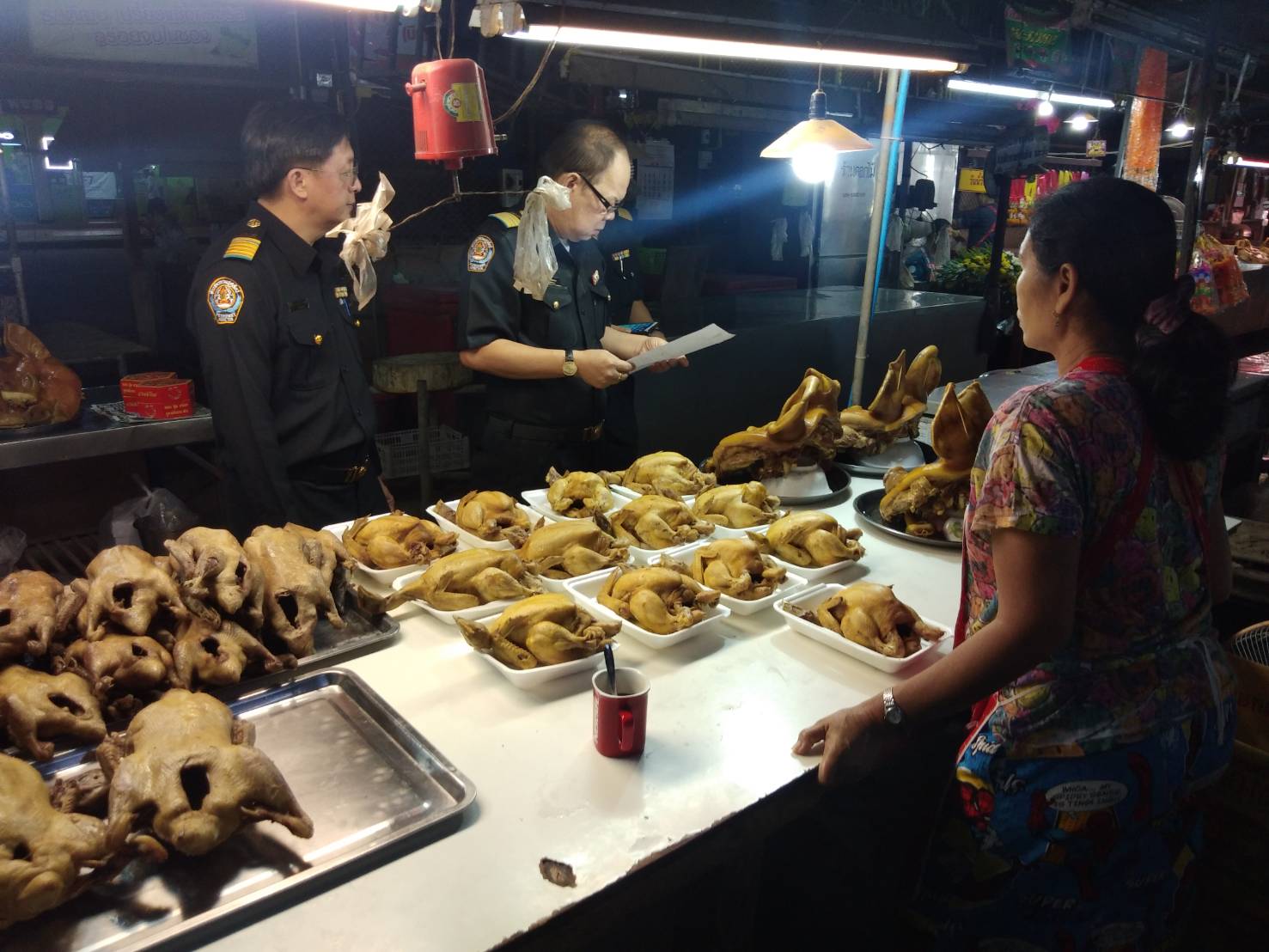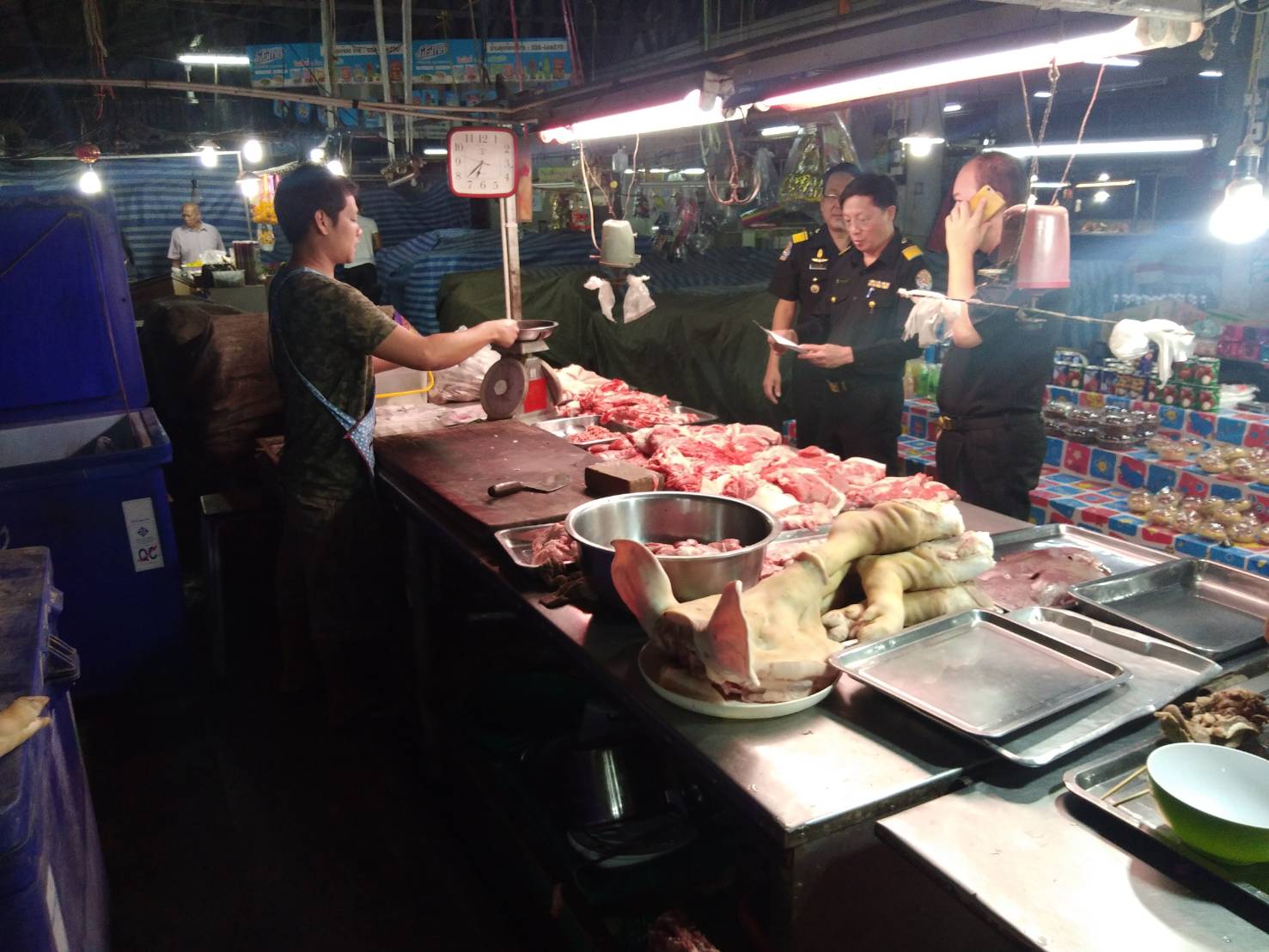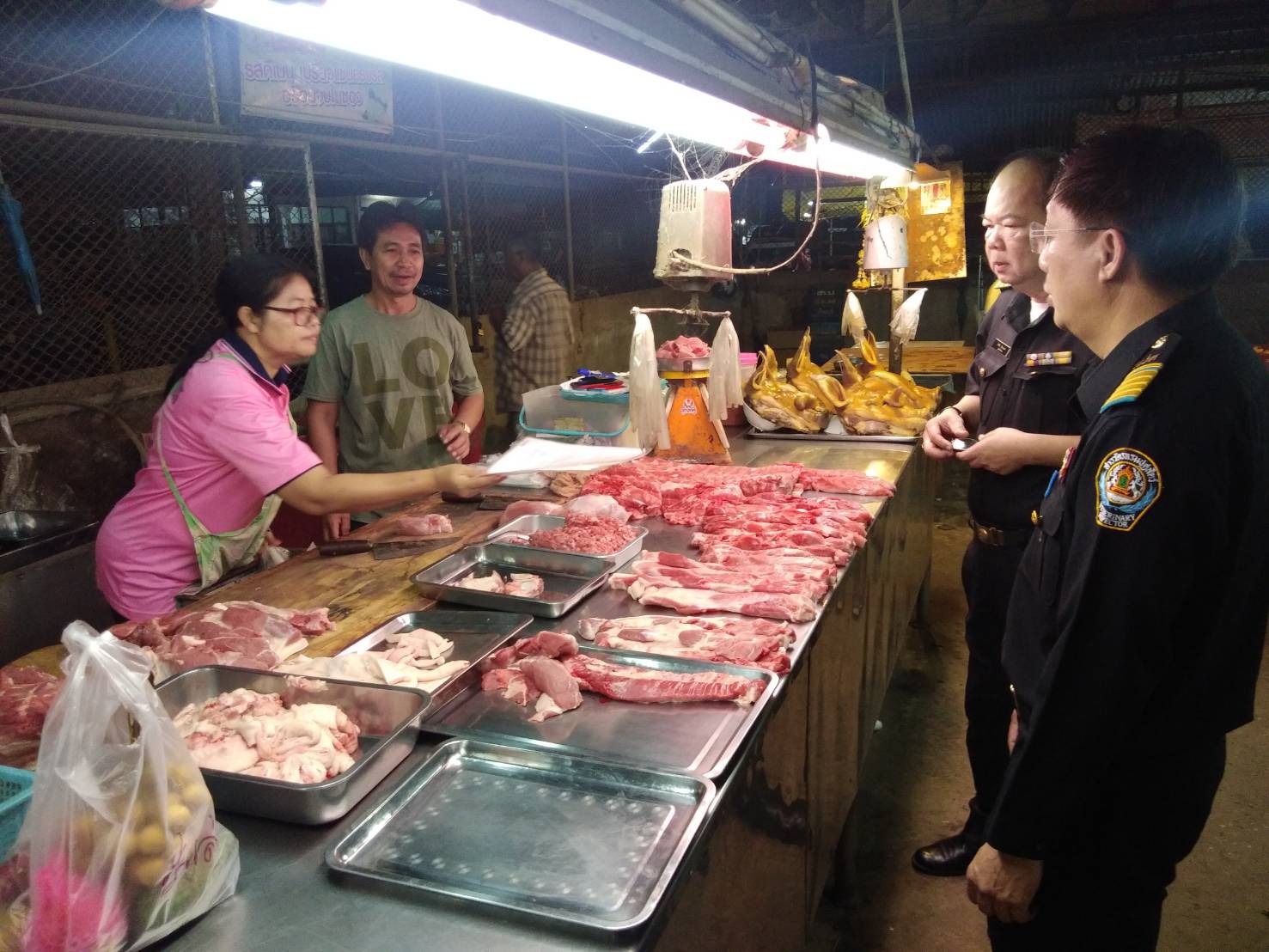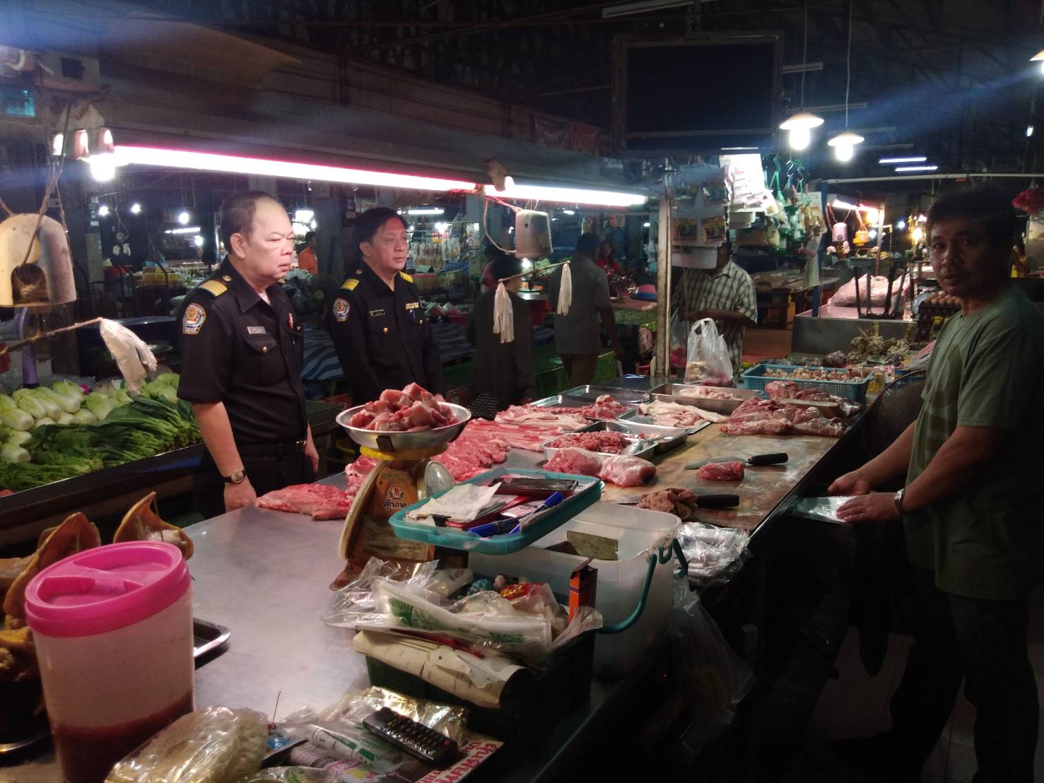 วันที่ 4 กุมภาพันธ์ 2562 สำนักงานปศุสัตว์จังหวัดระยอง มอบหมายให้หัวหน้ากลุ่มพัฒนาสุขภาพสัตว์ หัวหน้ากลุ่มพัฒนาคุณภาพสินค้าปศุสัตว์ และสำนักงานปศุสัตว์อำเภอวังจันทร์ ออกตรวจเขียงจำหน่ายเนื้อสัตว์โดยได้ตรวจใบอนุญาตค้าสัตว์และซากสัตว์และใบรับรองให้จำหน่ายเนื้อสัตว์ที่ฆ่าในโรงฆ่าสัตว์ ณ.ตลาดสดเทศบาลชุมแสง อำเภอวังจันทร์ จำนวนทั้งสิ้น 8 เขียง โดยทุกเขียงมีใบอนุญาตถูกต้อง