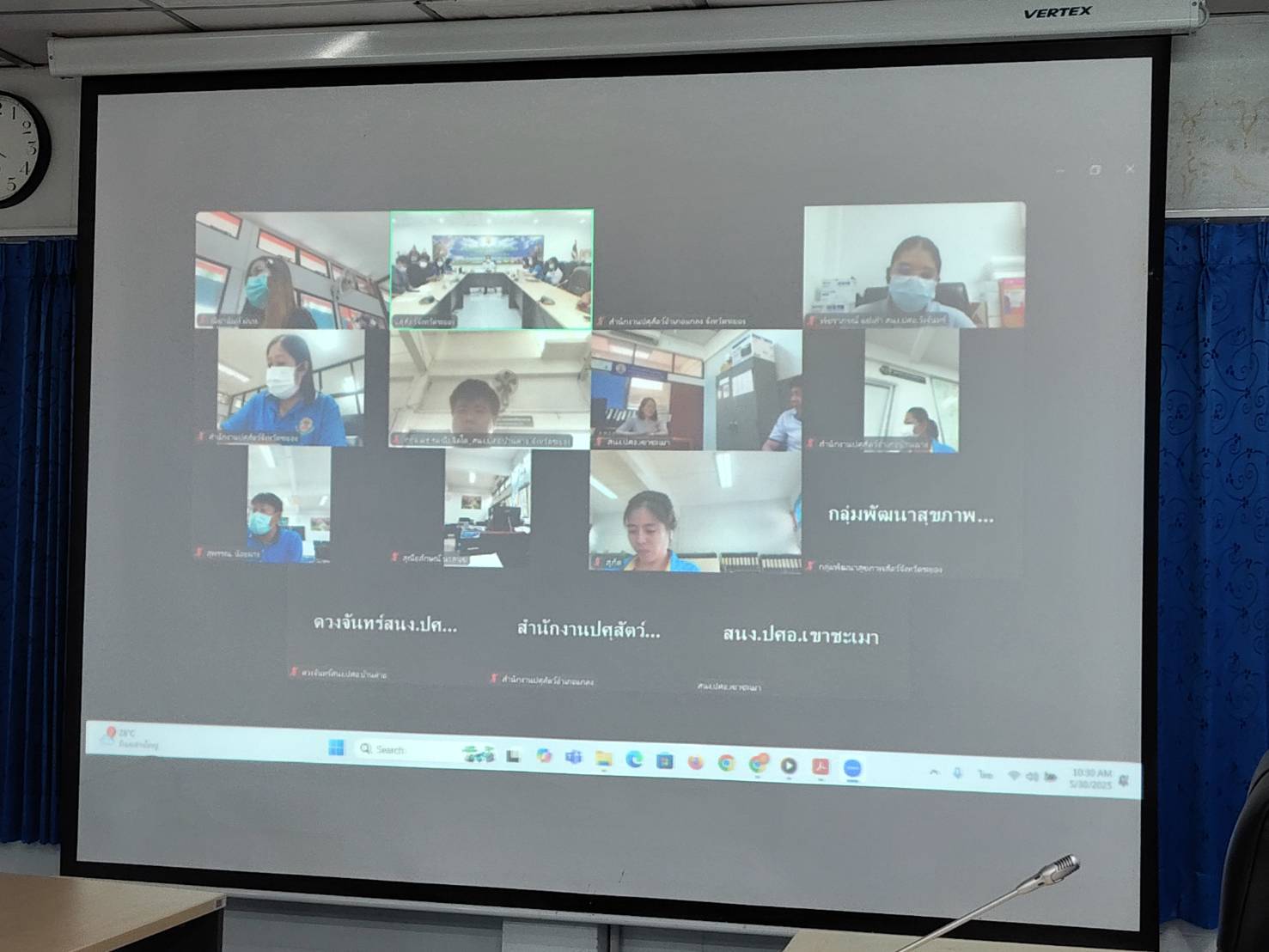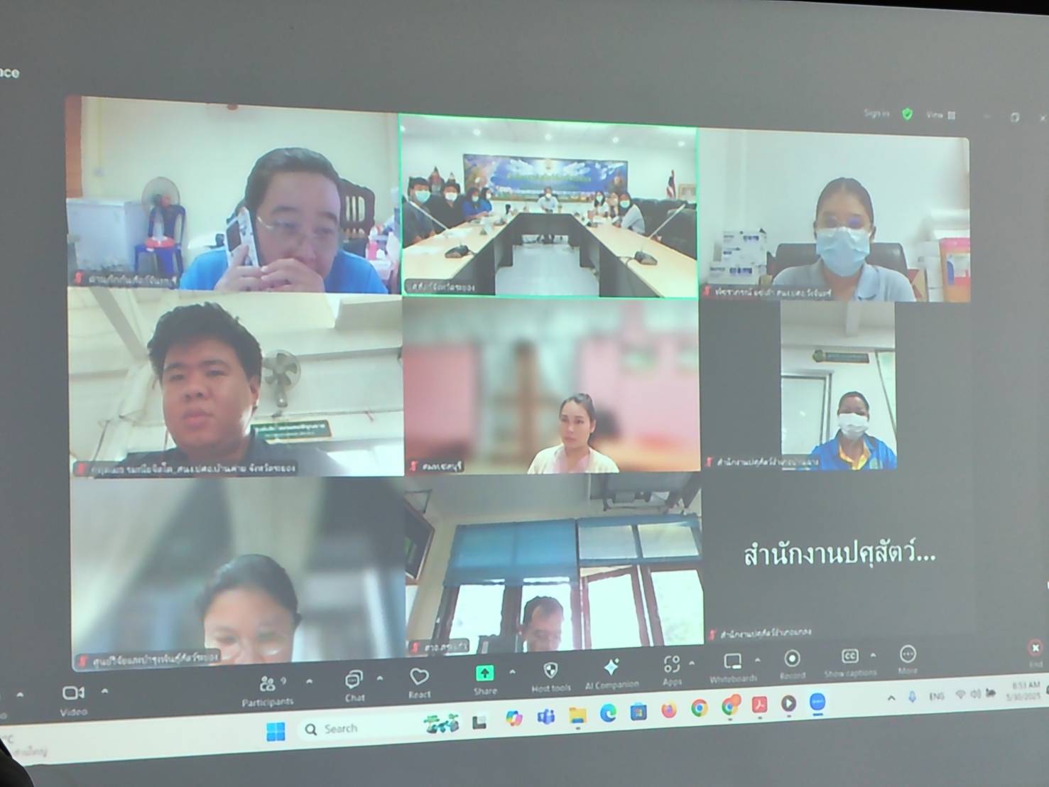 วันที่ 30 พฤษภาคม 2568 เวลา 09.00 -12.30 น. นายสัตวแพทย์ไทยวิวัฒน์ วรรณสุข ปศุสัตว์จังหวัดระยอง เป็นประธานการประชุมคณะกรรมการขับเคลื่อนนโยบายกรมปศุสัตว์ (DLD-C) ระดับพื้นที่จังหวัดระยอง และการประชุมข้าราชการและพนักงานราชการ ครั้งที่ 5/2568 ประจำเดือนพฤษภาคม 2568 โดยมีหน่วยงานคณะกรรมการร่วมประชุม ได้แก่ ศูนย์วิจัยและพัฒนาการสัตวแพทย์ภาคตะวันออก ศูนย์วิจัยและบำรุงพันธุ์สัตว์ระยอง ศูนย์วิจัยและพัฒนาอาหารสัตว์สระแก้ว ศูนย์วิจัยการผสมเทียมและเทคโนโลยีชีวภาพชลบุรี ด่านกักกันสัตว์ชลบุรี และด่านกักกันสัตว์จันทบุรี พร้อมด้วย หัวหน้ากลุ่มพัฒนาคุณภาพสินค้าปศุสัตว์ กลุ่มพัฒนาสุขภาพสัตว์ กลุ่มส่งเสริมและพัฒนาการปศุสัตว์ กลุ่มยุทธศาสตร์และสารสนเทศการปศุสัตว์ ฝ่ายบริหารงานทั่วไป และปศุสัตว์อำเภอทั้ง 8 อำเภอ โดยรับทราบนโยบายการปฏิบัติ รับฟังผลการดำเนินงาน ปัญหา อุปสรรค ข้อเสนอแนะ และแนวทางการขับเคลื่อนงานตามภารกิจรับผิดชอบ เพื่อเป็นการสนับสนุนและเพิ่มประสิทธิภาพในการปฏิบัติงานของเจ้าหน้าที่ในพื้นที่ให้มากยิ่งขึ้น ผ่านระบบประชุมทางไกล Zoom Meeting ณ ห้องประชุมสำนักงานปศุสัตว์จังหวัดระยอง