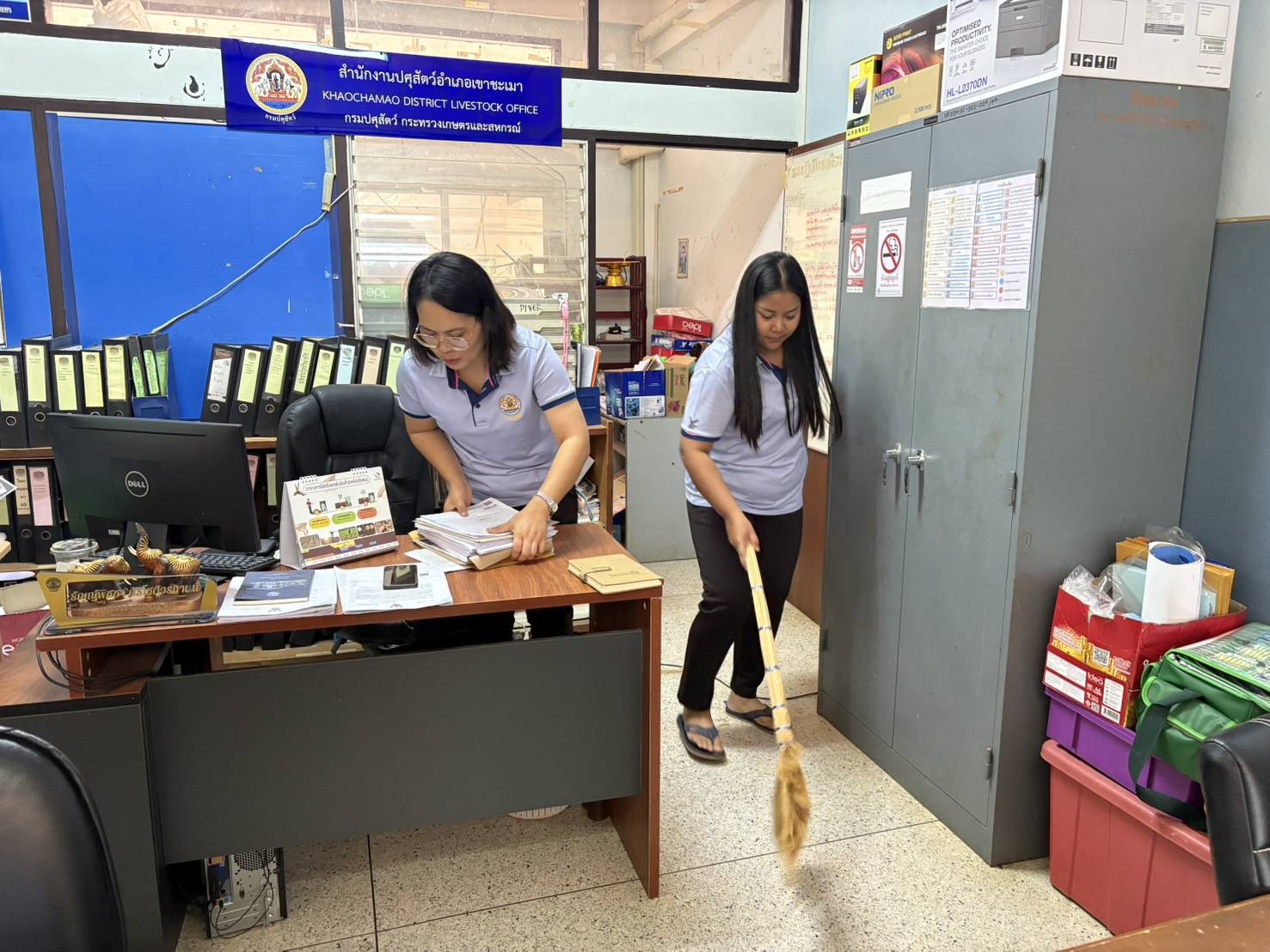 วันที่ 21 พฤษภาคม 2568 เวลา 08.30 น. นายสัตวแพทย์ไทยวิวัฒน์ วรรณสุข ปศุสัตว์จังหวัดระยอง พร้อมด้วย สพ.ญ.ณัฐนันท์ ประเสริฐ หัวหน้ากลุ่มพัฒนาสุขภาพสัตว์ สพ.ญ.สุภลักษณ์ ตันประยูร หัวหน้ากลุ่มพัฒนาคุณภาพสินค้าปศุสัตว์ นางสุภาวดี สุขีถาน หัวหน้าฝ่ายบริหารทั่วไป สพ.ญ.ชาลิสา วิทยา นายสัตวแพทย์ชำนาญการ รักษาการในตำแหน่งหัวหน้ากลุ่มยุทธศาสตร์และสารสนเทศการปศุสัตว์ พร้อมด้วยข้าราชการ พนักงานราชการ ลูกจ้างประจำ และจ้างเหมาบริการ ดำเนินการกิจกรรม 5 ส (Big Cleaning Day) เพื่อปรับปรุงสภาพแวดล้อมในการทำงาน ภายในสำนักงานปศุสัตว์จังหวัดระยอง และสำนักงานปศุสัตว์อำเภอทั้ง 8 แห่ง ณ สำนักงานปศุสัตว์จังหวัดระยอง อำเภอเมืองระยอง จังหวัดระยอง
