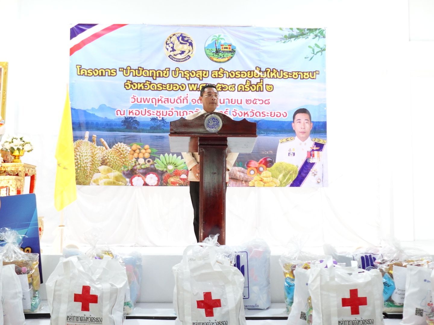 วันที่ 19 มิถุนายน 2568 เวลา 08.30 น. นายสัตวแพทย์ไทยวิวัฒน์ วรรณสุข ปศุสัตว์จังหวัดระยอง พร้อมด้วยเจ้าหน้าที่สำนักงานปศุสัตว์ระยอง และเจ้าหน้าที่สำนักงานปศุสัตว์อำเภอ เข้าร่วมกิจกรรมโครงการ หน่วยบำบัดทุกข์ บำรุงสุข สร้างรอยยิ้มให้ประชาชน จังหวัดระยอง พ.ศ. 2568 ครั้งที่ 2 ณ หอประชุมอำเภอวังจันทร์ ตำบลชุมแสง อำเภอวังจันทร์ จังหวัดระยอง โดยมี นายไตรภพ วงศ์ไตรรัตน์ ผู้ว่าราชการจังหวัดระยอง เป็นประธานในพิธีเปิด ซึ่งกิจกรรมบริการด้านปศุสัตว์สำหรับเกษตรกรผู้มารับบริการ ได้แก่