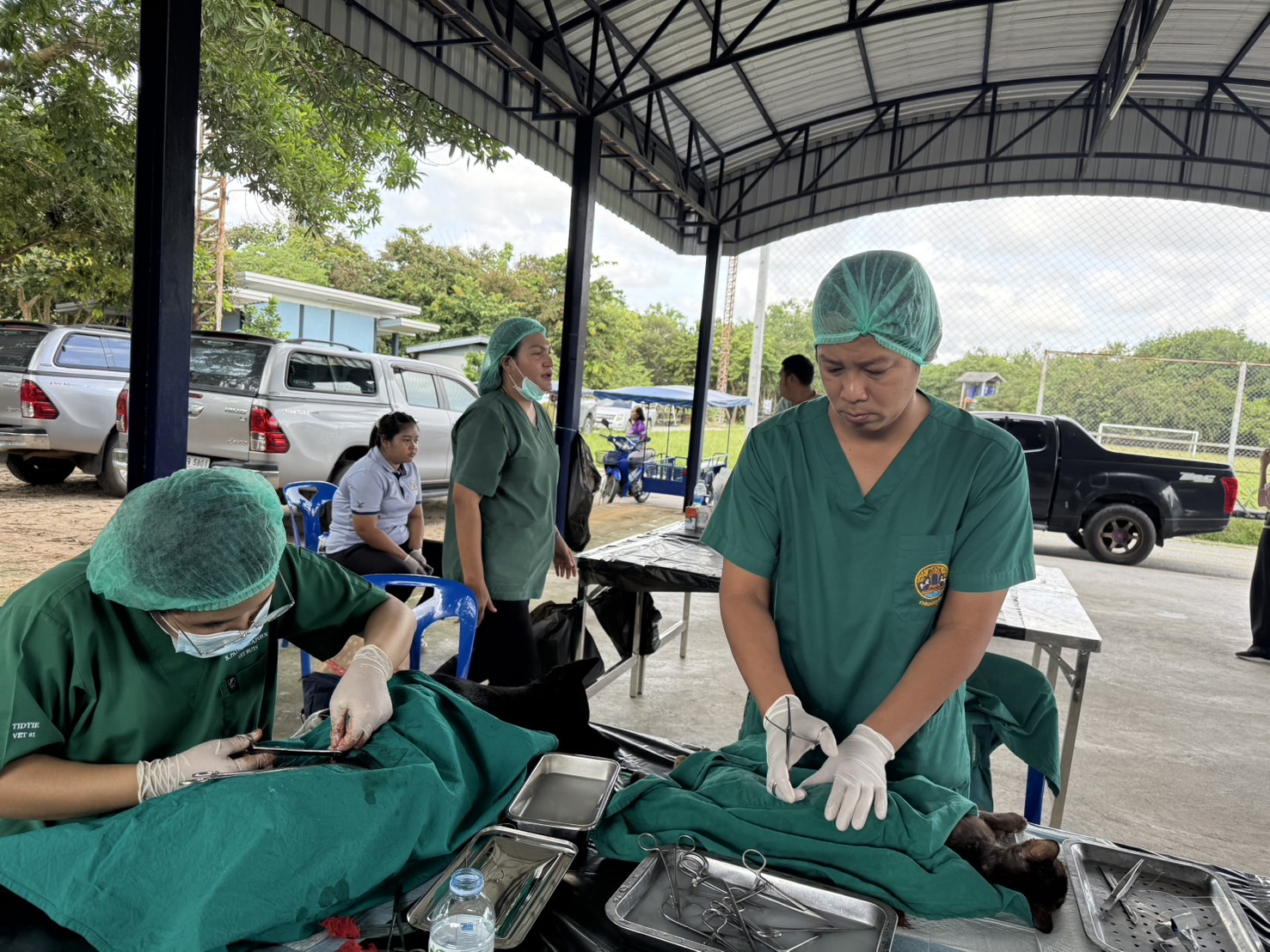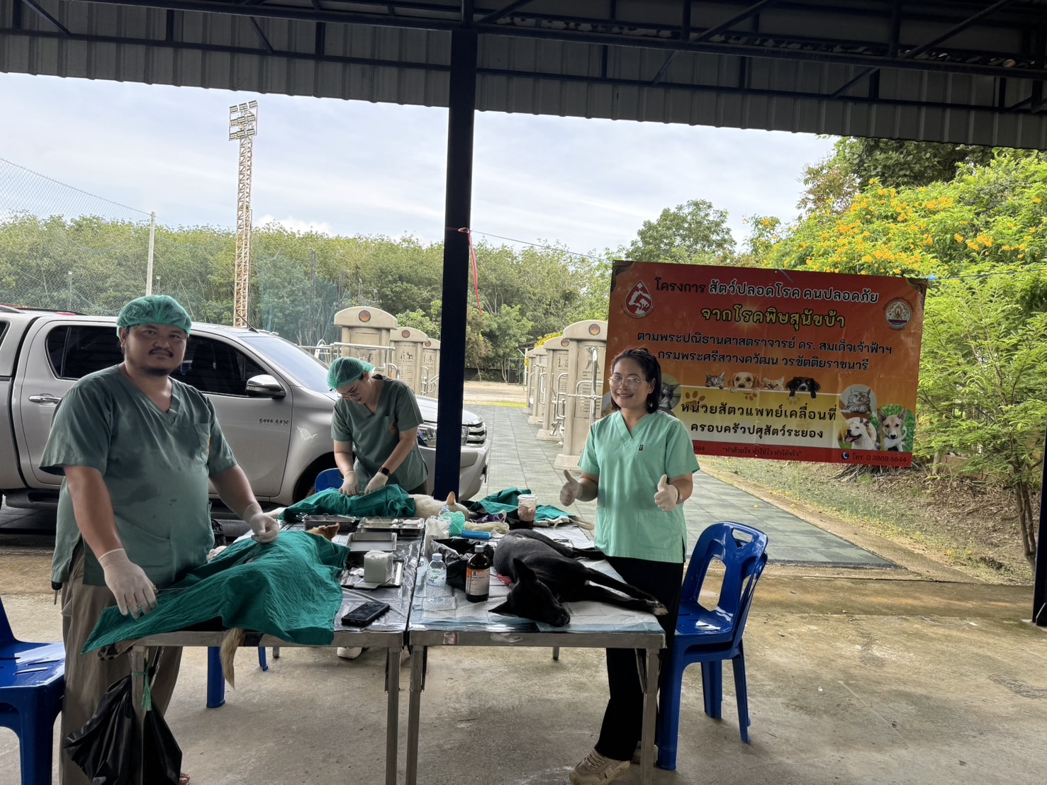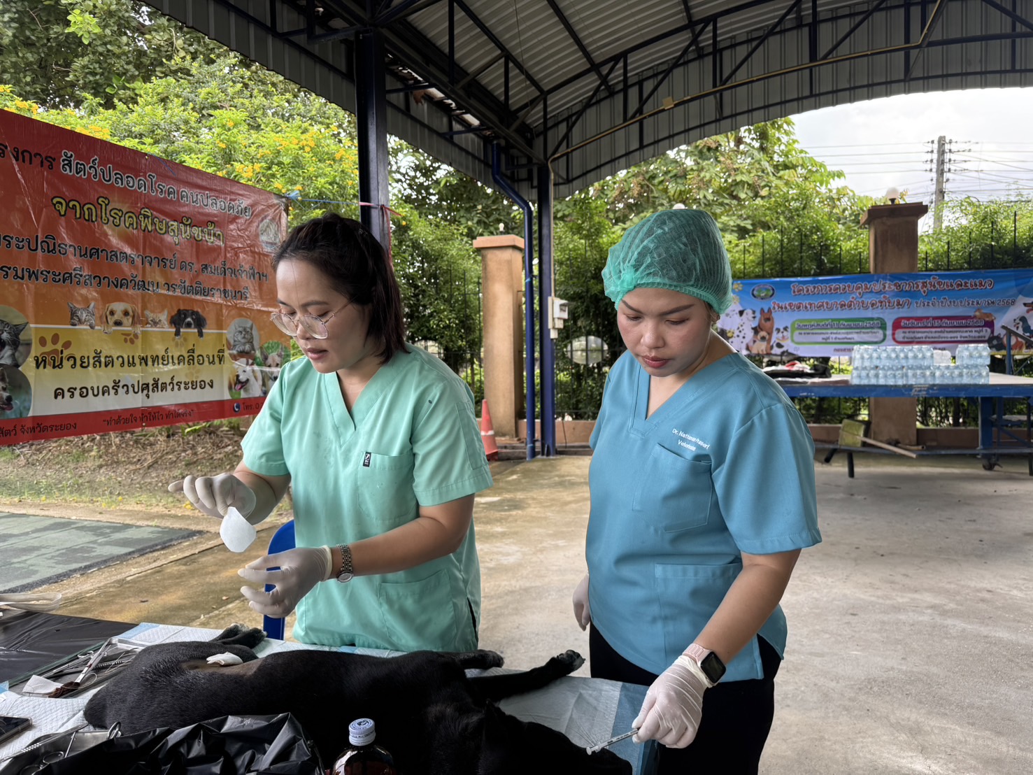 วันที่ 11 กันยายน 2568 เวลา 8.30 น. นายสัตวแพทย์ไทยวิวัฒน์ วรรณสุข ปศุสัตว์จังหวัดระยอง มอบหมายให้ สพ.ญ.ณัฐนันท์ ประเสริฐ นายสัตวแพทย์ชำนาญการพิเศษ หัวหน้ากลุ่มพัฒนาสุขภาพสัตว์ พร้อมด้วยเจ้าหน้าที่กลุ่มพัฒนาสุขภาพสัตว์ และเจ้าหน้าที่จากปศุสัตว์อำเภอ ร่วมกับเจ้าหน้าที่จากเทศบาลตำบลทับมา จัดทำโครงการควบคุมประชากรสุนัขและแมว ภายใต้โครงการสัตว์ปลอดโรค คนปลอดภัย จากโรคพิษสุนัขบ้า ตามพระปณิธาน ศาสตราจารย์ ดร.สมเด็จเจ้าฟ้าฯ กรมพระศรีสวางควัฒน วรขัตติยราชนารีโดยการผ่าตัดทำหมัน ให้แก่สุนัขและแมว ที่มีเจ้าของและไม่มีเจ้าของ และมีกิจกรรมการให้ความรู้เรื่องโรคพิษสุนัขบ้า ณศาลาอเนกประสงค์ หมู่ที่ 1 ตำบลทับมา อ.เมืองระยอง จ.ระยอง