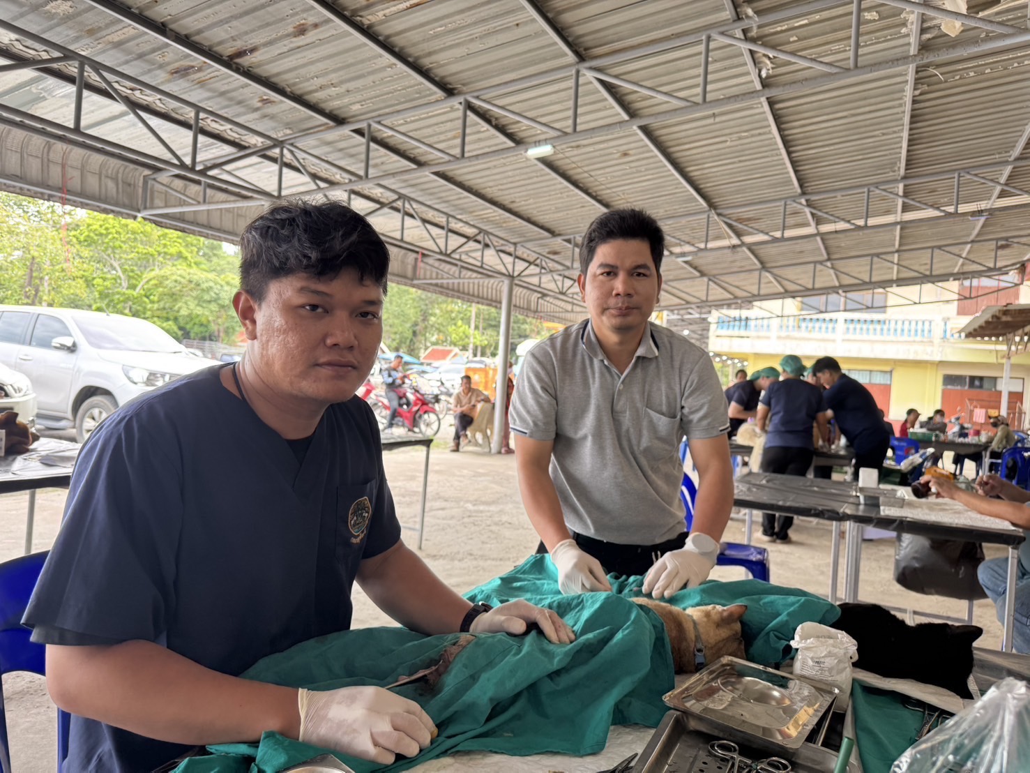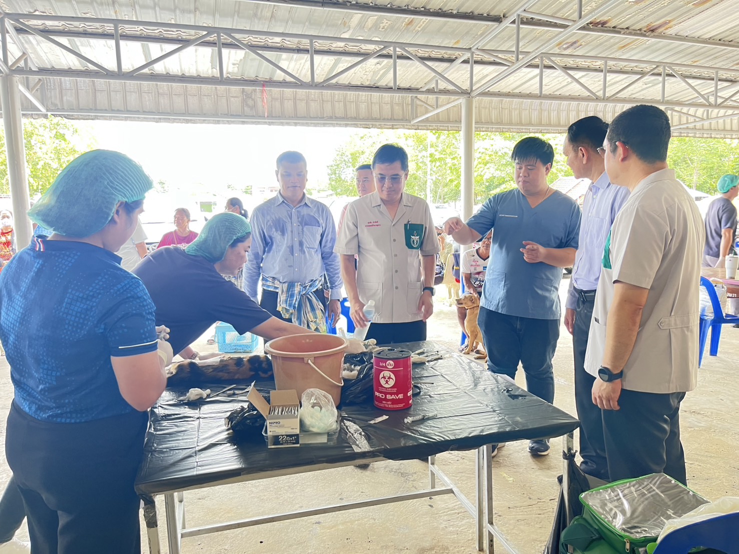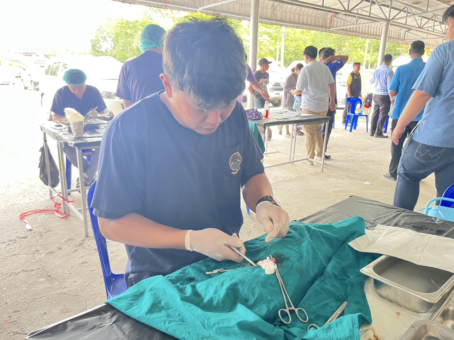 วันที่ 12 กันยายน 2568 เวลา 08.30 น. นายสัตวแพทย์ไทยวิวัฒน์ วรรณสุข ปศุสัตว์จังหวัดระยอง มอบหมายให้ สพ.ญ.ธัญวรรณ เกตุสุริยงค์ นายสัตวแพทย์ปฏิบัติการ กลุ่มพัฒนาสุขภาพสัตว์ พร้อมด้วย เจ้าหน้าที่สำนักงานปศุสัตว์จังหวัดระยอง และเจ้าหน้าที่สำนักงานปศุสัตว์อำเภอทุกอำเภอ เข้าร่วมกิจกรรมหน่วยแพทย์อาสา สมเด็จพระศรีนครินทราบรมราชชนนี (พอ.สว.) จังหวัดระยอง ณ วัดหนองพะวา หมู่ที่ 4 ตำบลบางบุตร อําเภอบ้านค่าย จังหวัดระยอง โดยมี นพ.สุรชัย คำภักดี นายแพทย์เชี่ยวชาญ (ด้านเวชกรรมป้องกัน) สำนักงานสาธารณสุขจังหวัดระยอง เป็นประธานในพิธีเปิด ซึ่งมีกิจกรรมบริการด้านปศุสัตว์ได้แก่ 1.บริการฉีดวัคซีนป้องกันโรคพิษสุนัขบ้า จำนวน 35 ตัว 2.บริการผ่าตัดทำหมันสุนัข-แมว ภายใต้โครงการ “สัตว์ปลอดโรค คนปลอดภัยจากโรคพิษสุนัขบ้า ตามพระปณิธานศาสตราจารย์ ดร. สมเด็จเจ้าฟ้าฯ กรมพระศรีสวางควัฒน วรขัตติยราชนารี” รวม 35 ตัว แบ่งเป็นการทำหมันสุนัขเพศผู้จำนวน 5 ตัว สุนัขเพศเมียจำนวน 10 ตัว แมวเพศผู้จำนวน 4 ตัว และแมวเพศเมียจำนวน 16 ตัว ทั้งนี้มีประชาชนในพื้นที่เข้ารับบริการด้านปศุสัตว์ จำนวน 30 ราย