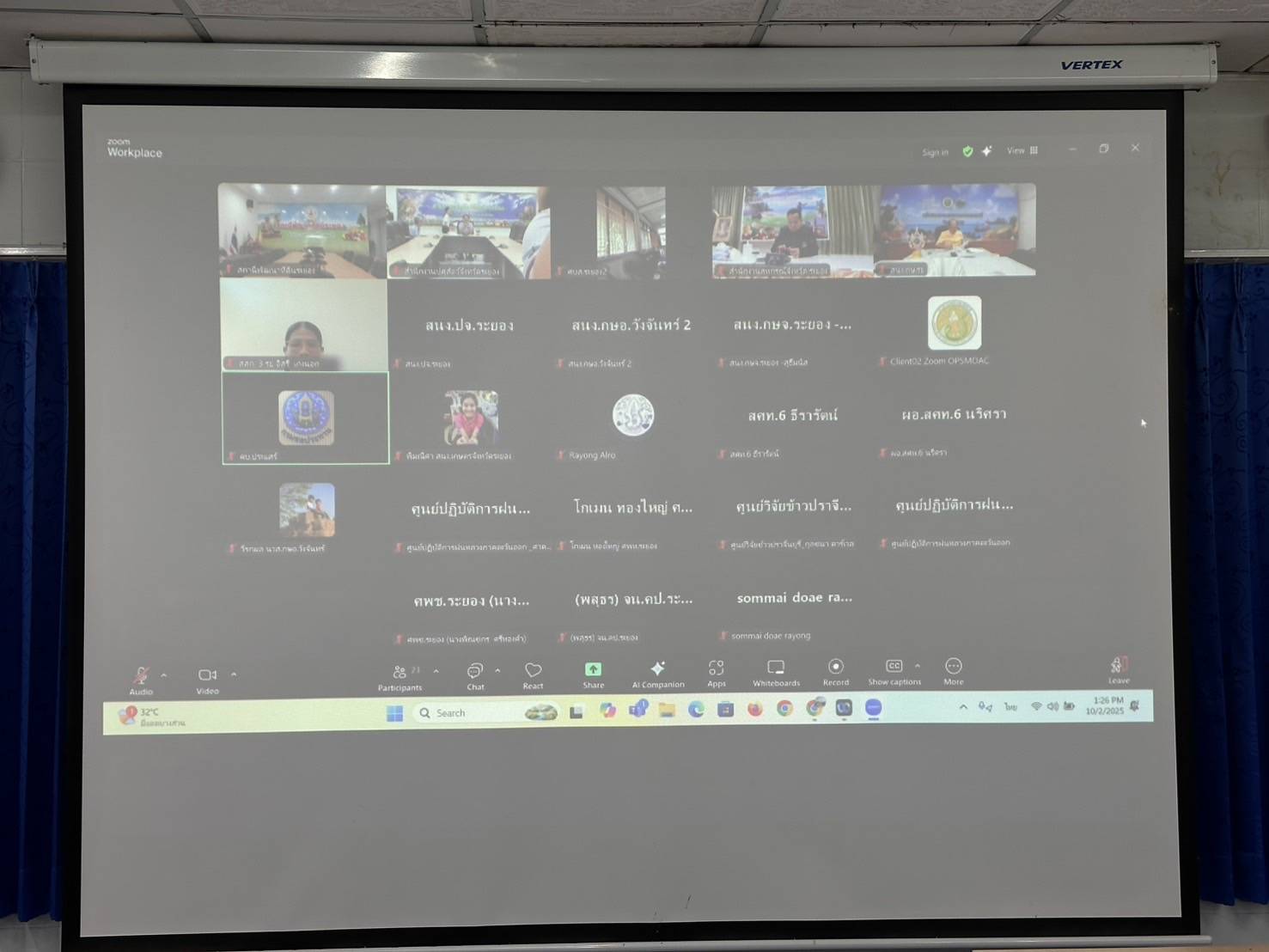 วันที่ 2 ตุลาคม 2568 เวลา 13.30 น. นายสัตวแพทย์ไทยวิวัฒน์ วรรณสุข ปศุสัตว์จังหวัดระยอง พร้อมด้วยสัตวแพทย์หญิงชาลิสา วิทยา นายสัตวแพทย์ชำนาญการ กลุ่มยุทธศาสตร์และสารสนเทศการปศุสัตว์ สำนักงานปศุสัตว์จังหวัดระยอง เข้าร่วมการประชุมคณะกรรมการขับเคลื่อนงานด้านการเกษตรระดับจังหวัด (SCP) จังหวัดระยอง ครั้งที่ 4/2568 โดยมีนายธนโชค พงษ์ชวลิต เกษตรและสหกรณ์จังหวัดระยอง เป็นประธานการประชุม ผ่านระบบประชุมทางไกล Zoom เพื่อรับทราบนโยบายสำคัญของนายธรรมนัส พรหมเผ่า รองนายกรัฐมนตรีและรัฐมนตรีว่าการกระทรวงเกษตรและสหกรณ์ รวมทั้งนโยบายสำคัญด้านเกษตรของนายภาสกร บุญญลักษม์ ผู้ว่าราชการจังหวัดระยอง และร่วมกันพิจารณาโครงการสนับสนุนสินเชื่อแปลงใหญ่ทุเรียนอำเภอวังจันทร์ โดยที่ประชุมมีมติให้ความเห็นชอบโครงการดังกล่าว