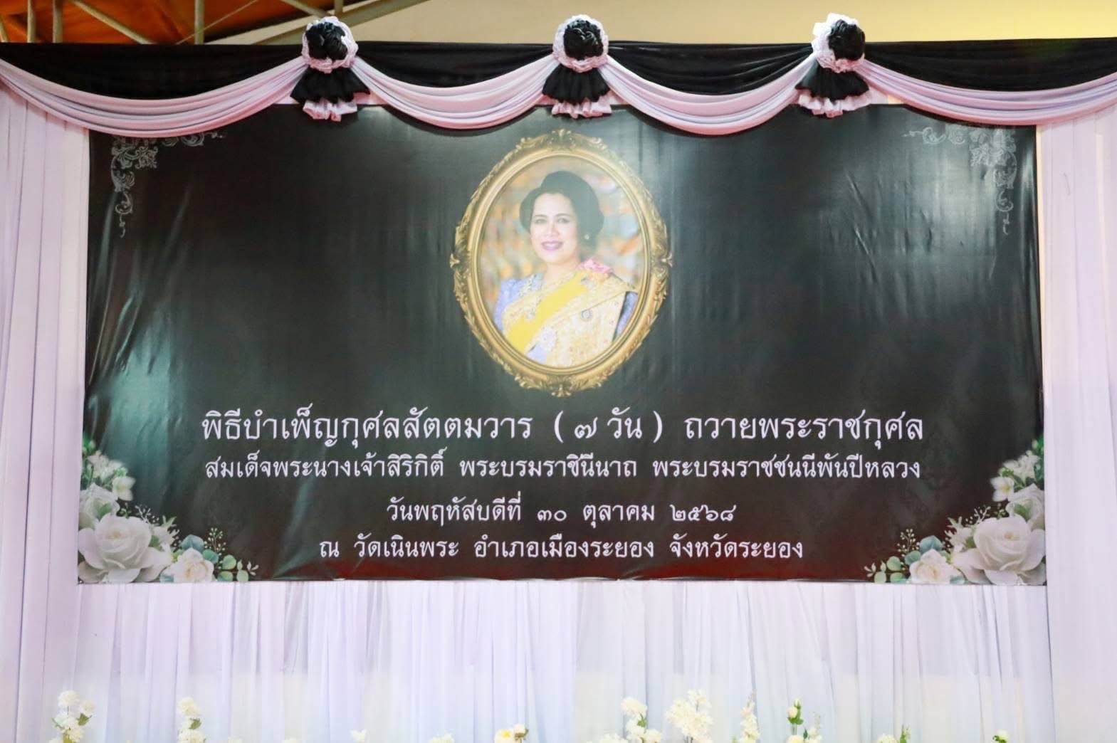 วันที่ 30 ตุลาคม 2568 เวลา 16.30 น. นายสัตวแพทย์ไทยวิวัฒน์ วรรณสุข ปศุสัตว์จังหวัดระยอง พร้อมด้วยเจ้าหน้าที่สำนักงานปศุสัตว์จังหวัดระยองและเจ้าหน้าที่สำนักงานปศุสัตว์อำเภอเมืองระยอง เข้าร่วมพิธีบำเพ็ญกุศลสัตตมวาร 7 วัน เพื่ออุทิศถวายเป็นพระราชกุศลสมเด็จพระนางเจ้าสิริกิติ์ พระบรมราชินีนาถ พระบรมราชชนนีพันปีหลวง โดยมีนายภาสกร บุญญลักษม์ ผู้ว่าราชการจังหวัดระยอง เป็นประธานในพิธี ณ ศาลาการเปรียญ วัดเนินพระ ตำบลเนินพระ อำเภอเมืองระยอง จังหวัดระยอง
