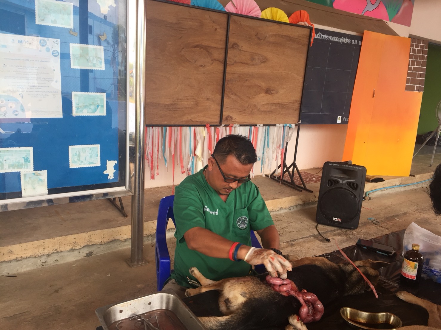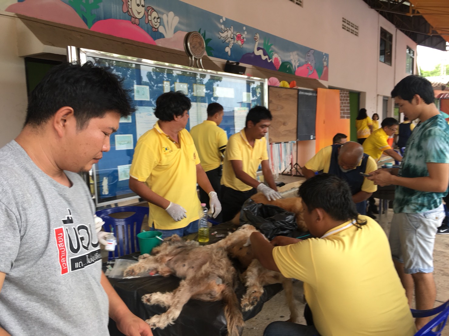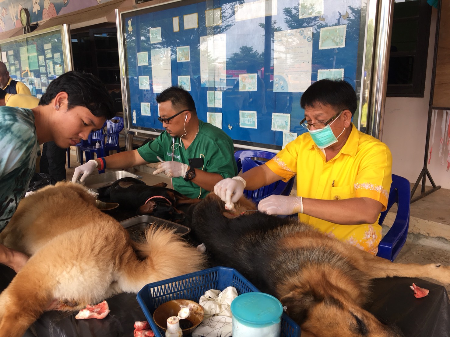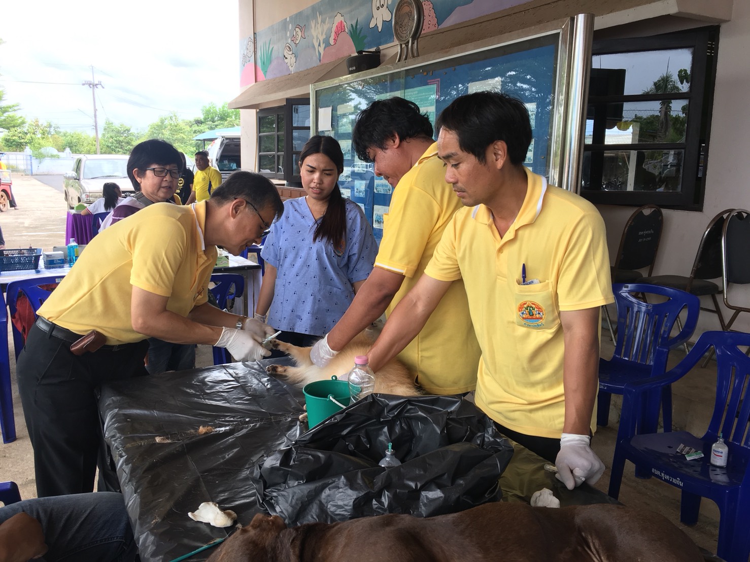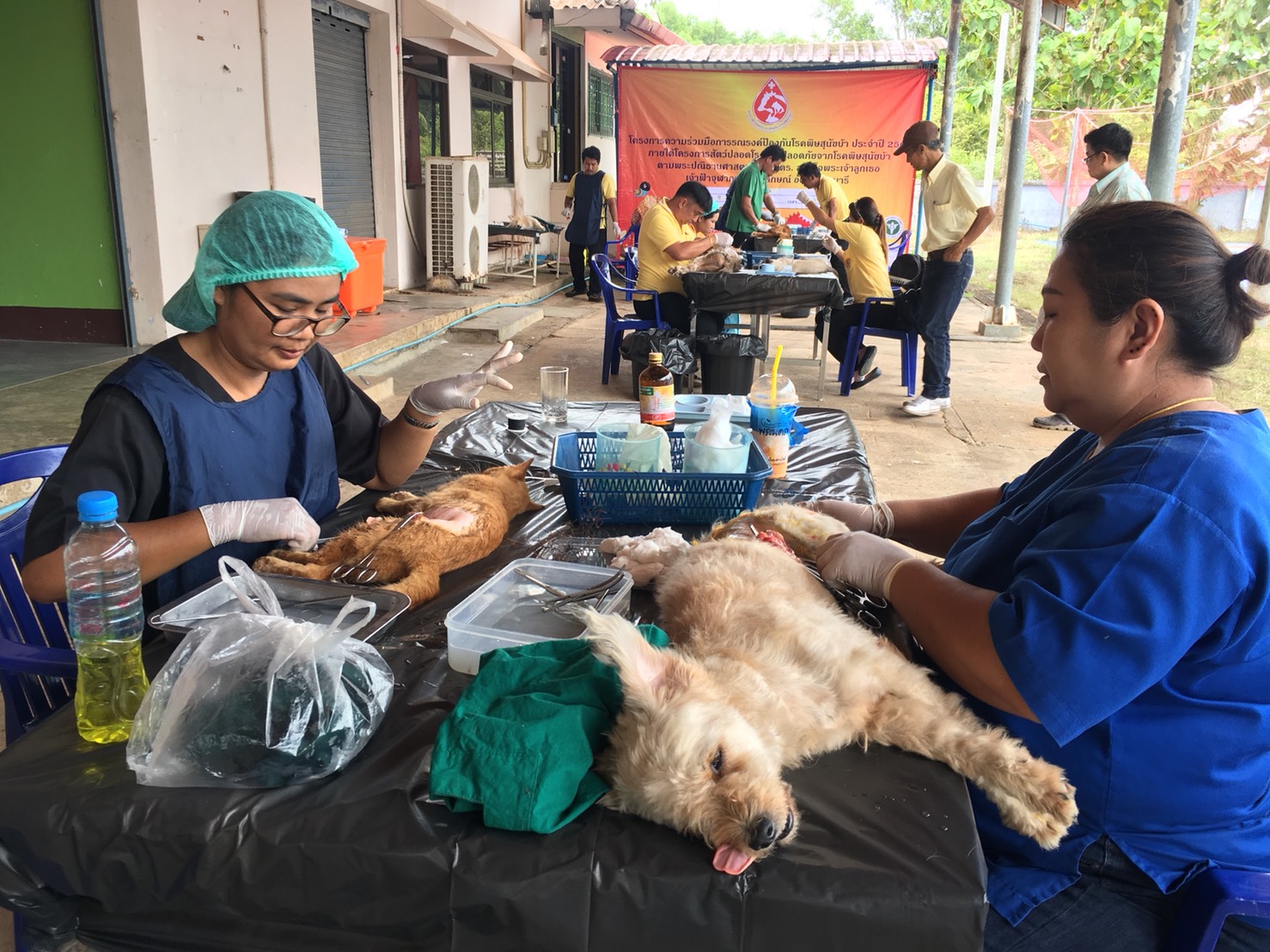 วันที่ 11 กรกฎาคม 2561 เวลา 13.30 - 16.30 น. สำนักงานปศุสัตว์จังหวัดระยอง ร่วมกับองค์การบริหารส่วนตำบลทุ่งควายกิน ลงพื้นที่ทำหมันสุนัขแมว ตามโครงการรณรงค์ควบคุมประชากรสุนัขแมวในเขตจังหวัดระยอง ภายใต้โครงการสัตว์ปลอดโรค คนปลอดภัย จากโรคพิษสุนัขบ้า ตามพระปณิธานศาสตราจารย์ ดร.สมเด็จพระเจ้าลูกเธอ เจ้าฟ้าจุฬาภรณวลัยลักษณ์ อัครราชกุมารี โดยการผ่าตัดทำหมัน และฉีดวัคซีนป้องกันโรคพิษสุนัขบ้า ให้แก่สุนัขและแมว ณ องค์การบริหารส่วนตำบลทุ่งควายกิน ต.ทุ่งควายกิน อ.แกลง จ.ระยอง ซึ่งผลการปฏิบัติงานผ่าตัดทำหมัน มีดังนี้ สุนัขเพศเมีย 25 ตัว สุนัขเพศผู้ 13 ตัว แมวเพศเมีย 16 ตัว แมวเพศผู้ 6 ตัว รวม 60 ตัว