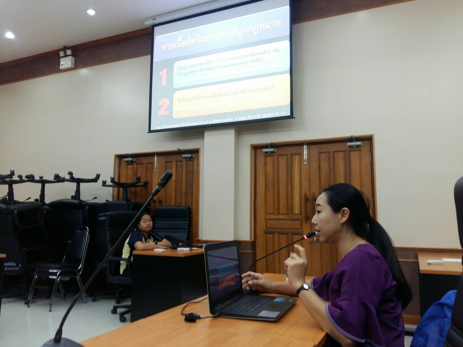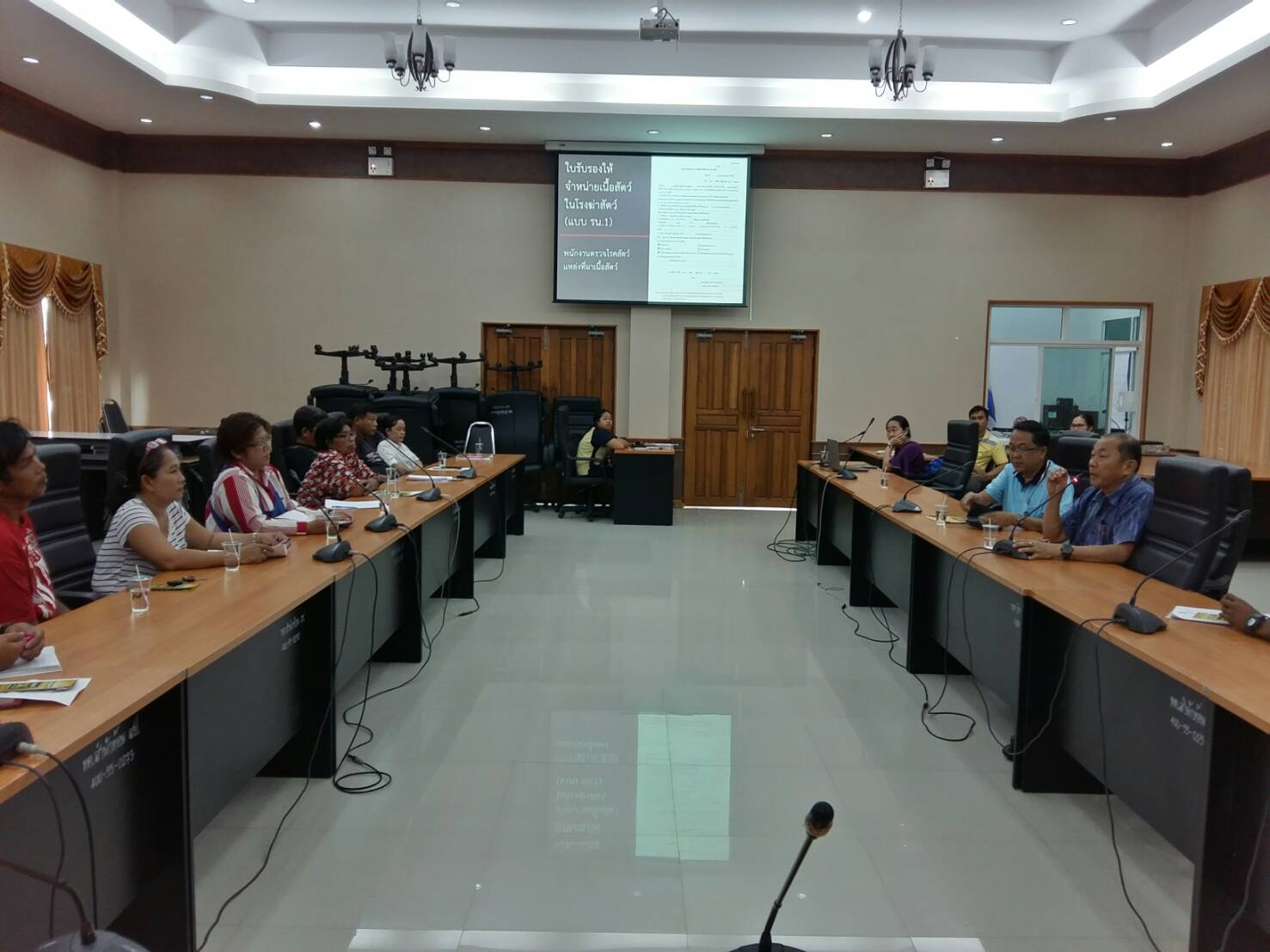 วันที่ 19 ตุลาคม 2561 สำนักงานปศุสัตว์จังหวัดระยอง ประชุมชี้แจงผู้ประกอบการสถานที่จำหน่ายเนื้อสัตว์ ในเขตเทศบาลเมืองบ้านฉาง และเทศบาลตำบลสำนักท้อน อ.บ้านฉาง เพื่อให้มีความรู้ ความเข้าใจ ในข้อกฎหมายที่เกี่ยวข้องกับการจำหน่ายเนื้อสัตว์